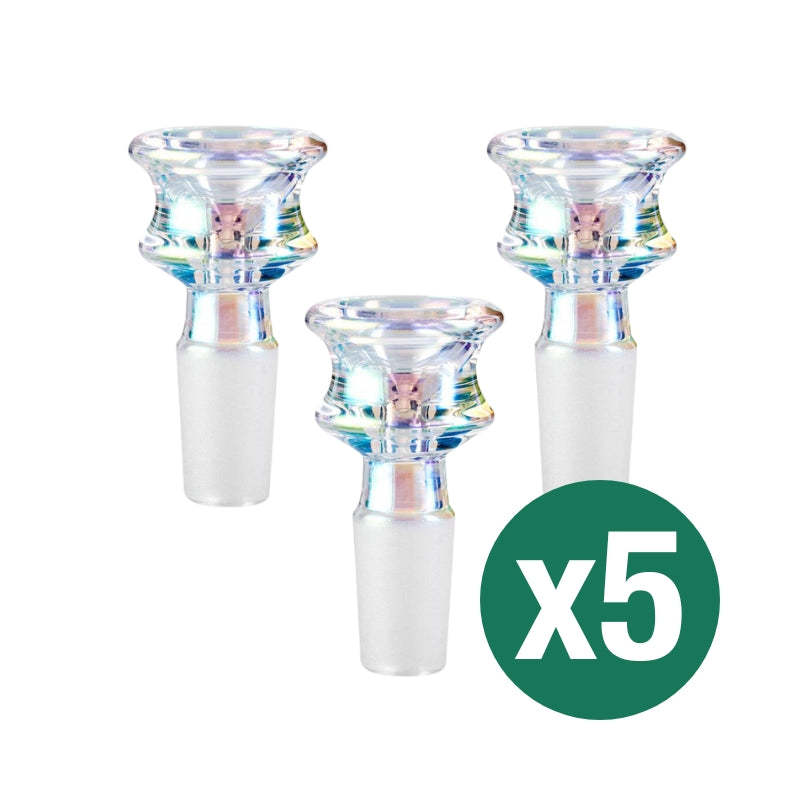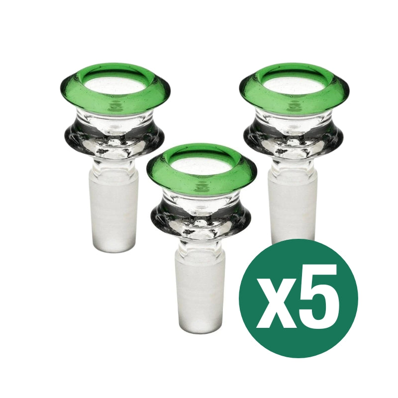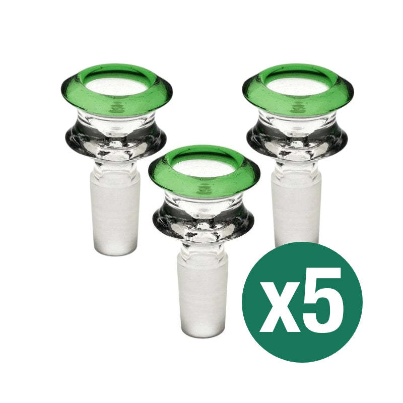 The Higher Concepts Glass Cone Piece (5 Pack) is a wickedly cheap bundle featuring five cone pieces. This bowl is a wide, curved and colourful male glass cone piece with plenty of volume to pack your favourite herbs for multiple rips. It is exclusive to our premium Higher Concepts range. The hourglass shape adds a touch of class, style and beauty to your bong while making it a pleasure to hold, use and remove.