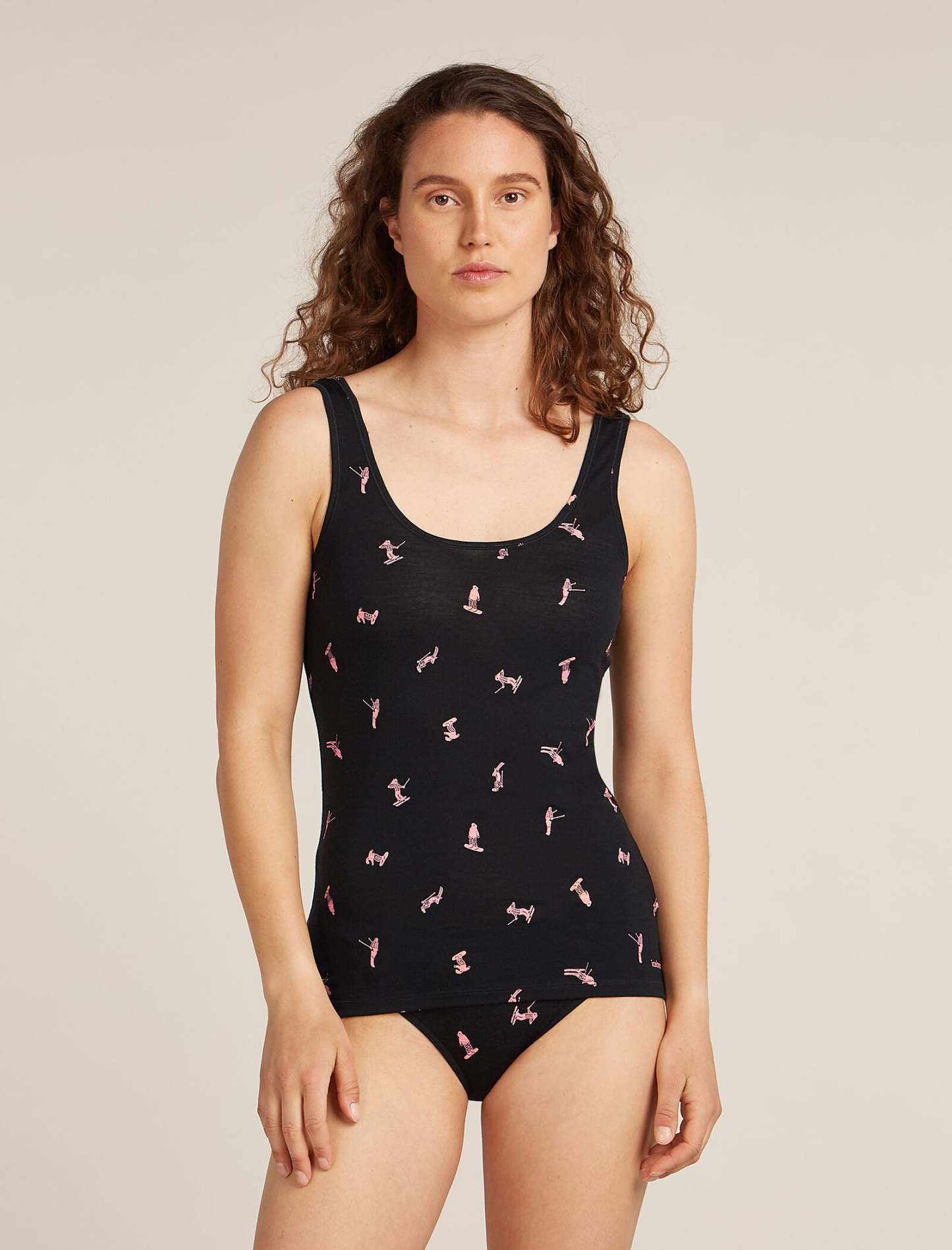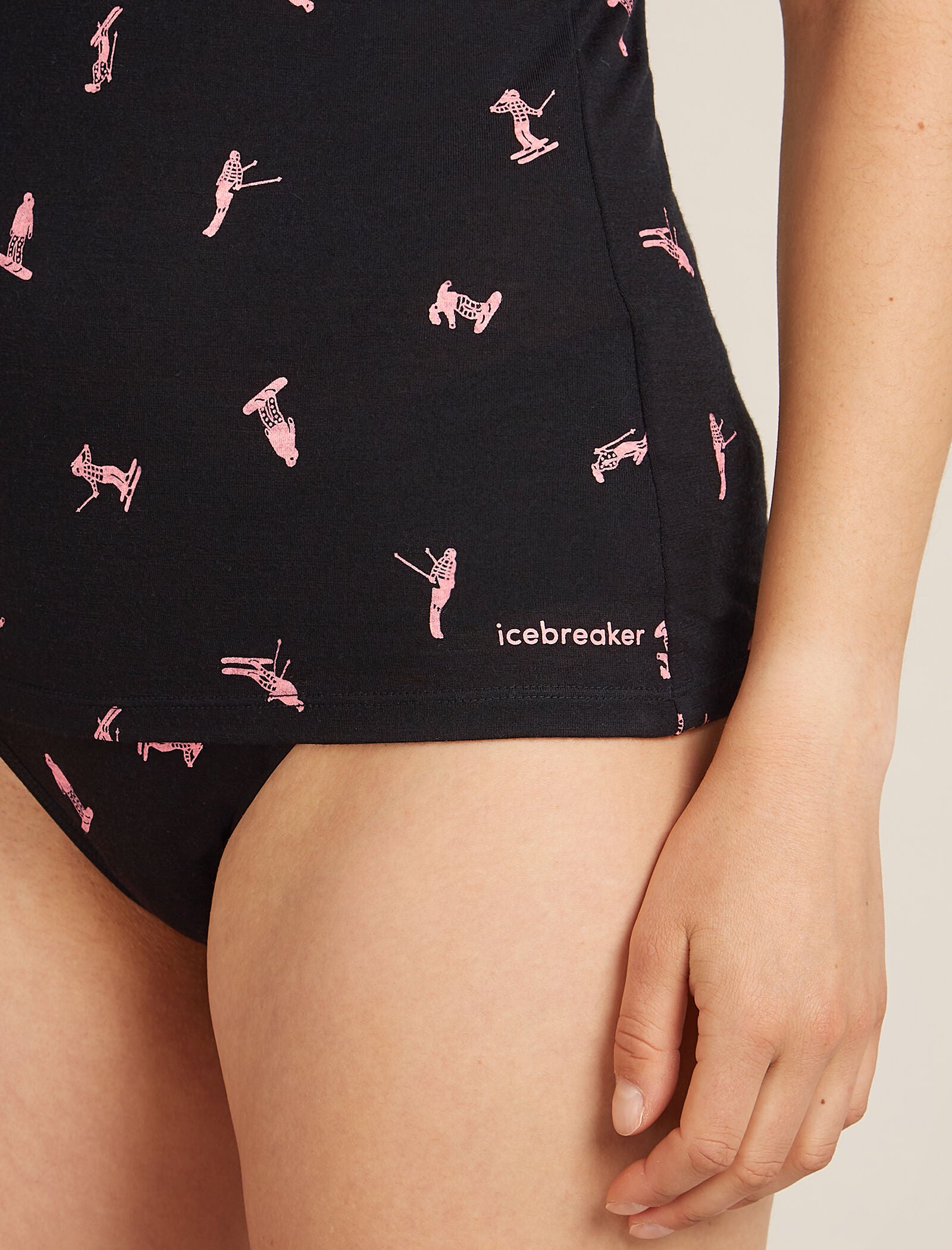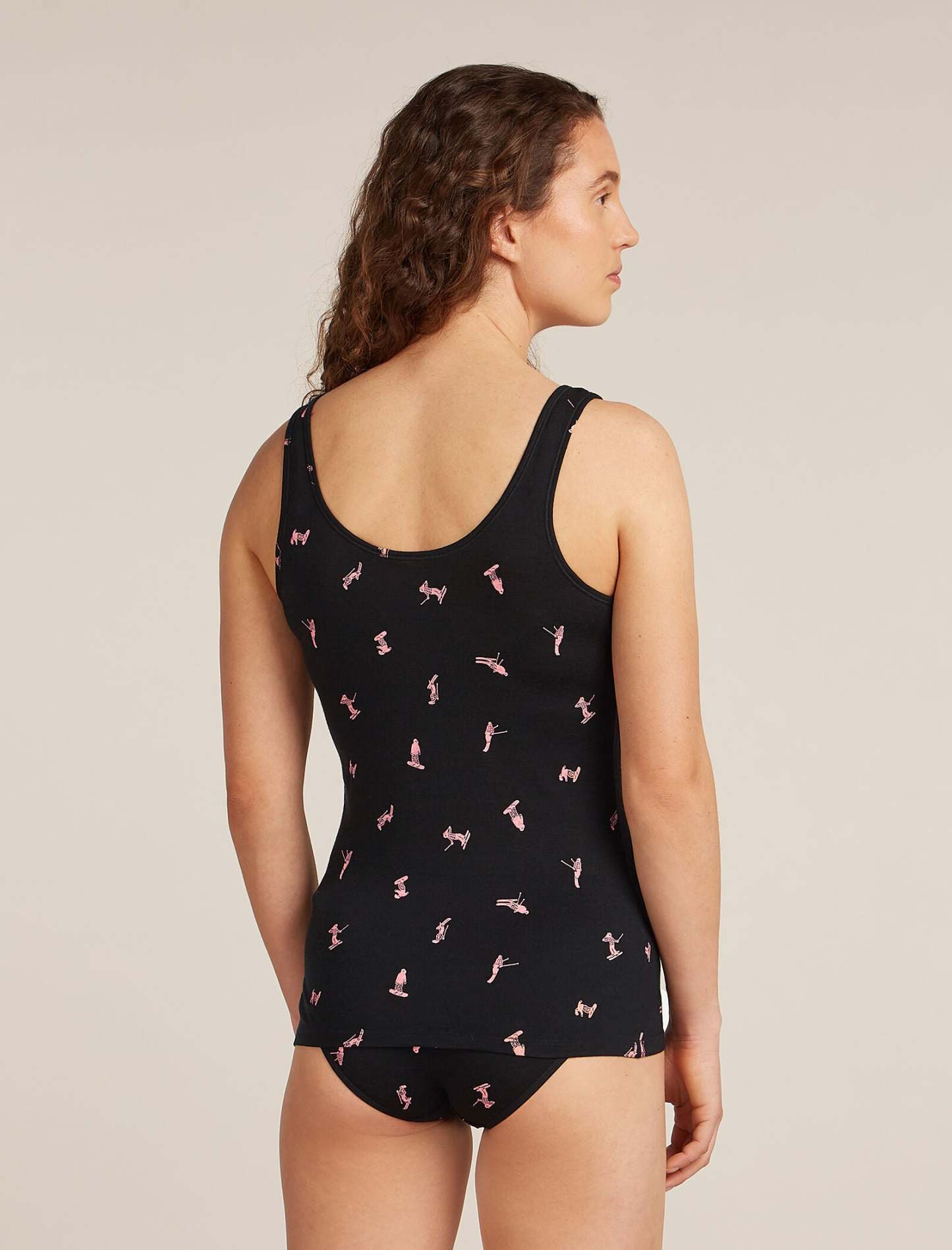 A soft and stretchy top for everyday comfort and layering, the Merino 150 Siren Tank Snow Day features a slim fit and our corespun merino blend fabric. A fun all over print of various snowboarders and skiers, making there way down the piste. ?